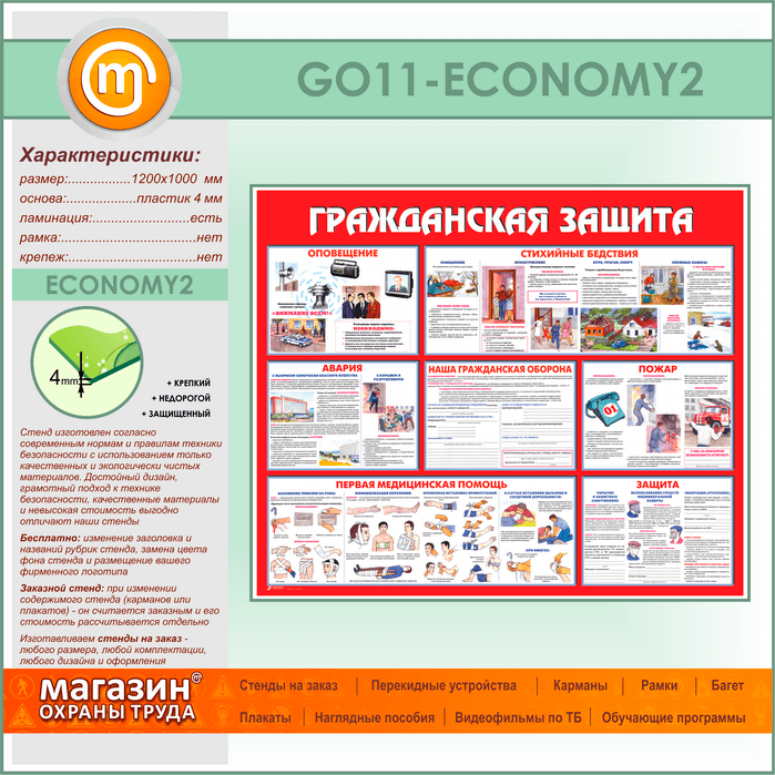 Стенд «Гражданская защита» (GO-11-ECONOMY2) в Ачинске купить