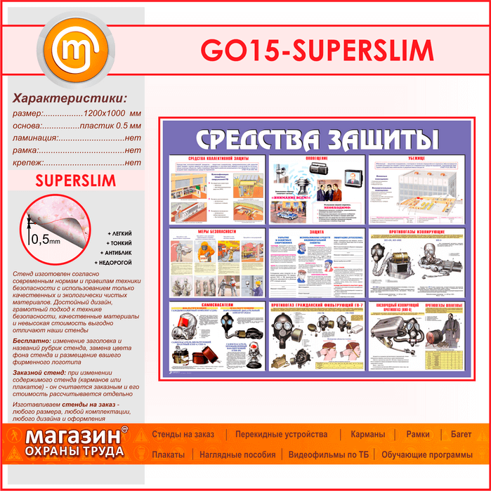 Стенд «Средства защиты» (GO-15-SUPERSLIM) в Ачинске купить