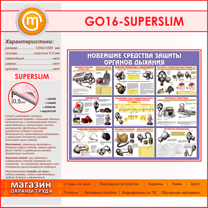 Стенд «Новейшие средства защиты органов дыхания» (GO-16-SUPERSLIM) в Ачинске купить