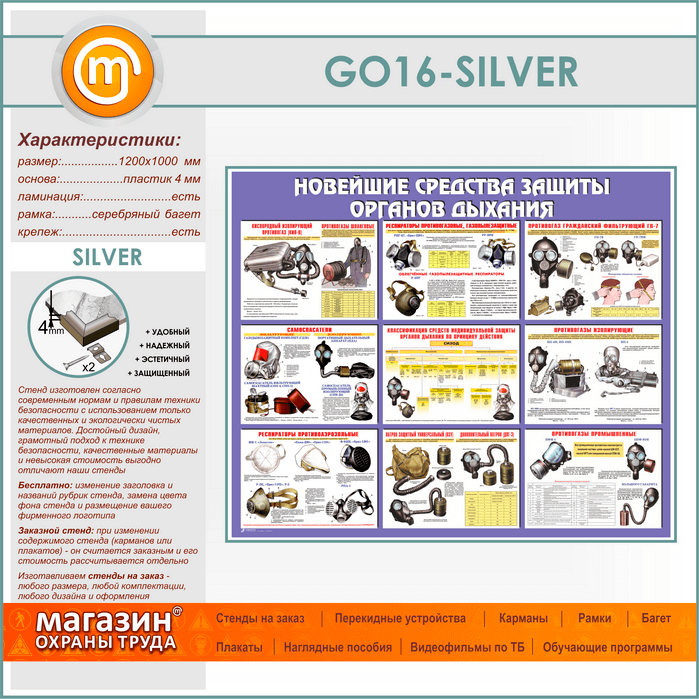 Стенд «Новейшие средства защиты органов дыхания» (GO-16-SILVER) в Ачинске купить
