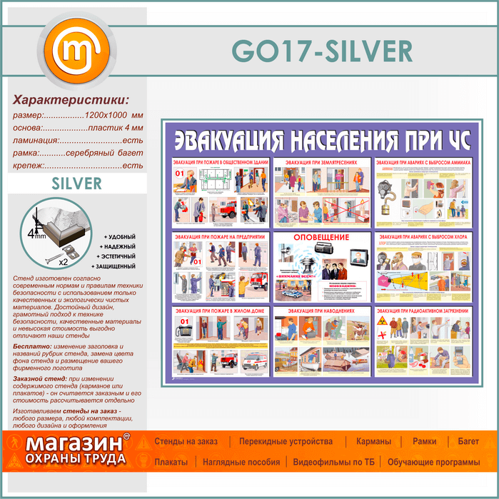 Стенд «Эвакуация населения при ЧС» (GO-17-SILVER) в Ачинске купить
