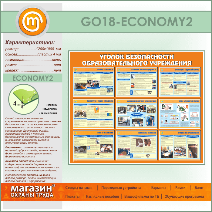 Стенд «Уголок безопасности образовательного учреждения» (GO-18-ECONOMY2) в Ачинске купить