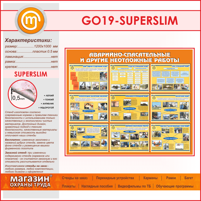 Стенд «Аварийно-спасательные и другие неотложные работы» (GO-19-SUPERSLIM) в Ачинске купить
