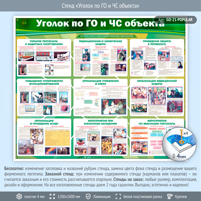 Стенд «Уголок по ГО и ЧС объекта» (GO-21-POPULAR) в Ачинске купить
