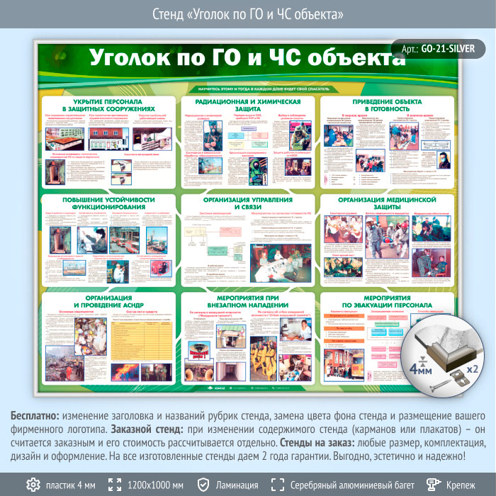 Стенд «Уголок по ГО и ЧС объекта» (GO-21-SILVER) в Ачинске купить