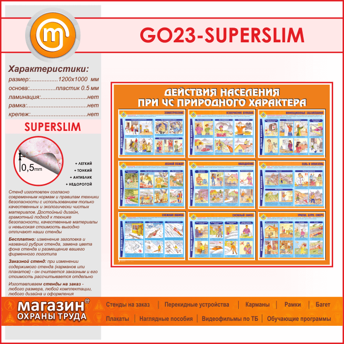 Стенд «Действия населения при ЧС природного характера» (GO-23-SUPERSLIM) в Ачинске купить
