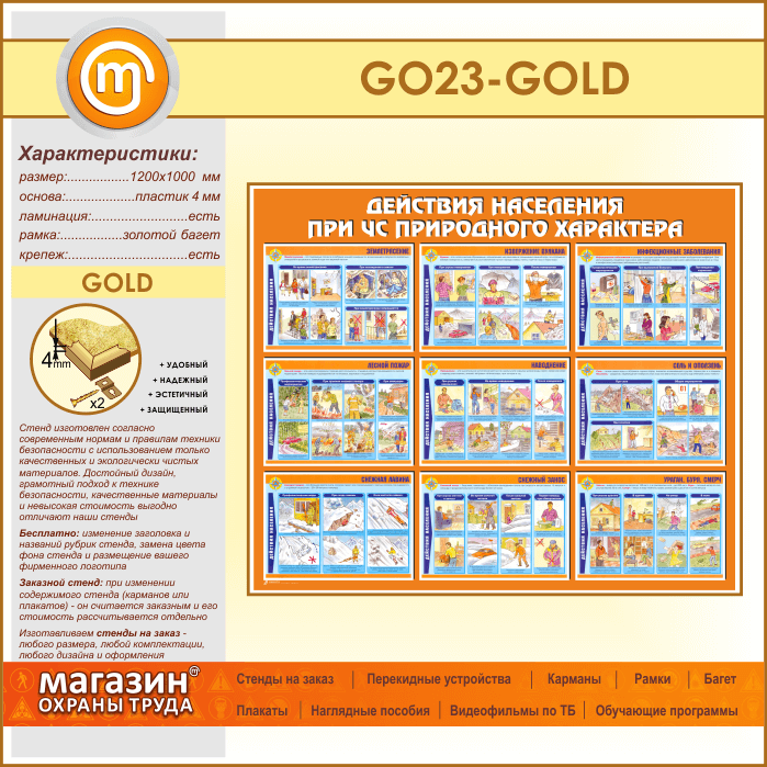 Стенд «Действия населения при ЧС природного характера» (GO-23-GOLD) в Ачинске купить