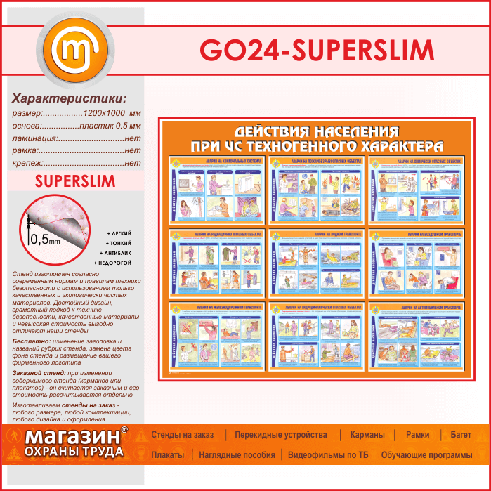 Стенд «Действия населения при ЧС техногенного характера» (GO-24-SUPERSLIM) в Ачинске купить