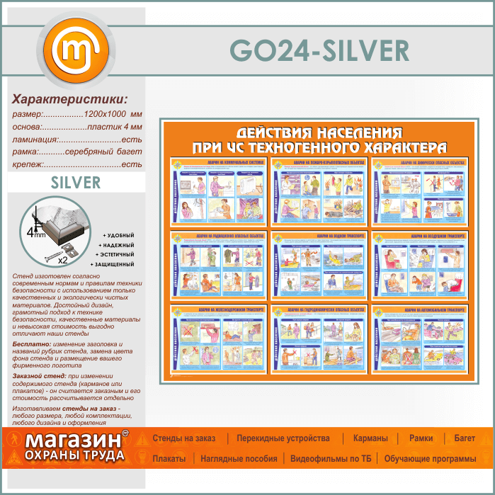 Стенд «Действия населения при ЧС техногенного характера» (GO-24-SILVER) в Ачинске купить