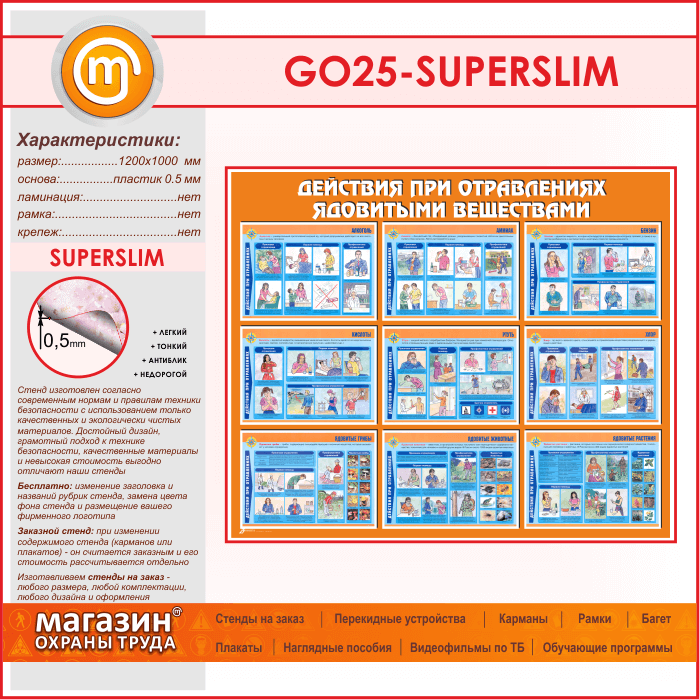 Стенд «Действия при отравлении ядовитыми веществами» (GO-25-SUPERSLIM) в Ачинске купить