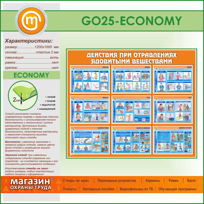 Стенд «Действия при отравлении ядовитыми веществами» (GO-25-ECONOMY) в Ачинске купить