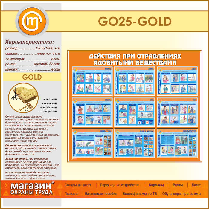 Стенд «Действия при отравлении ядовитыми веществами» (GO-25-GOLD) в Ачинске купить