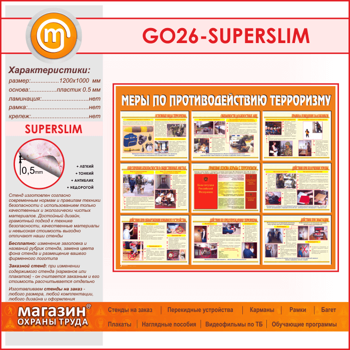 Стенд «Меры по противодействию терроризму» (GO-26-SUPERSLIM) в Ачинске купить