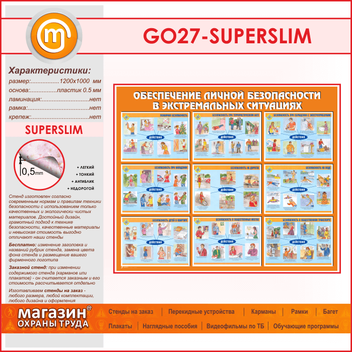 Стенд «Обеспечение личной безопасности в экстремальных ситуациях» (GO-27-SUPERSLIM) в Ачинске купить
