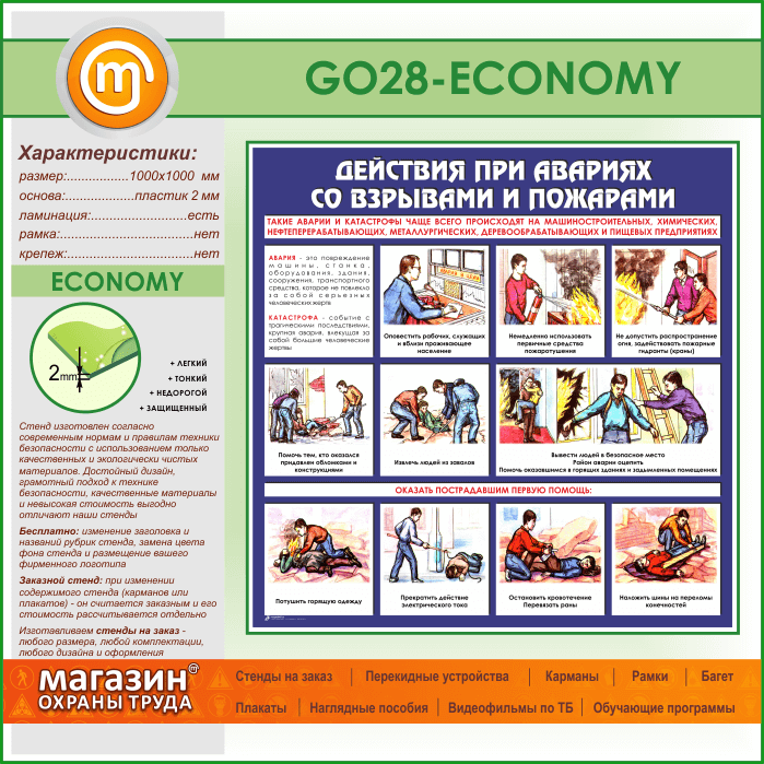 Стенд «Действия при авариях со взрывами и пожарами» (GO-28-ECONOMY) в Ачинске купить