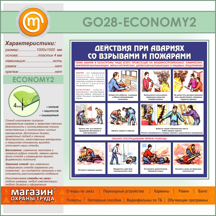 Стенд «Действия при авариях со взрывами и пожарами» (GO-28-ECONOMY2) в Ачинске купить