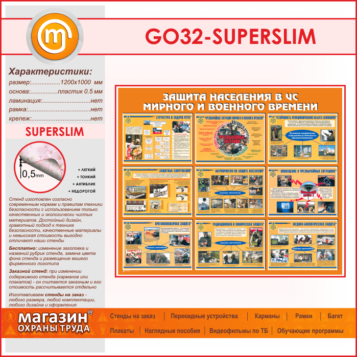 Стенд «Защита населения в ЧС мирного и военного времени» (GO-32-SUPERSLIM) в Ачинске купить