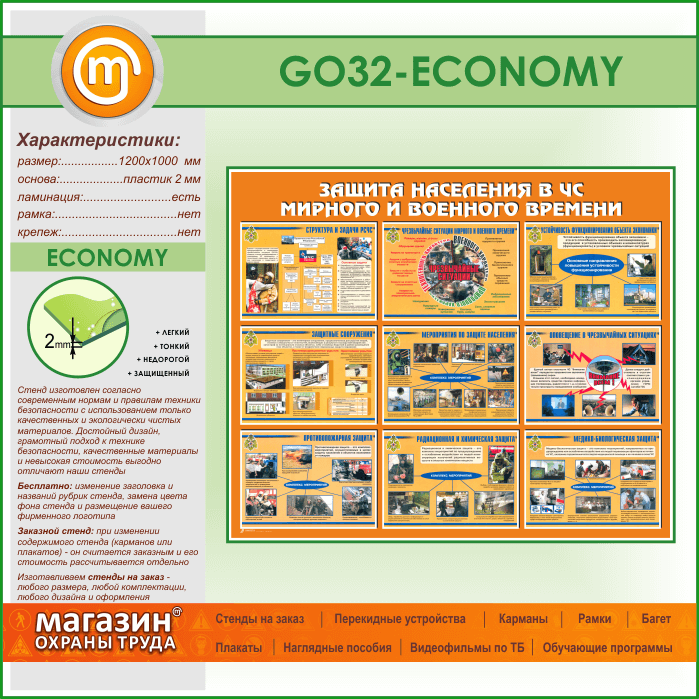 Стенд «Защита населения в ЧС мирного и военного времени» (GO-32-ECONOMY) в Ачинске купить