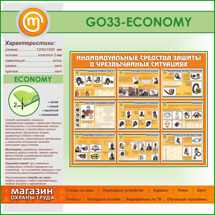 Стенд «Индивидуальные средства защиты в чрезвычайных ситуациях» (GO-33-ECONOMY) в Ачинске купить