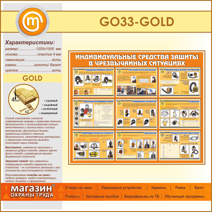 Стенд «Индивидуальные средства защиты в чрезвычайных ситуациях» (GO-33-GOLD) в Ачинске купить