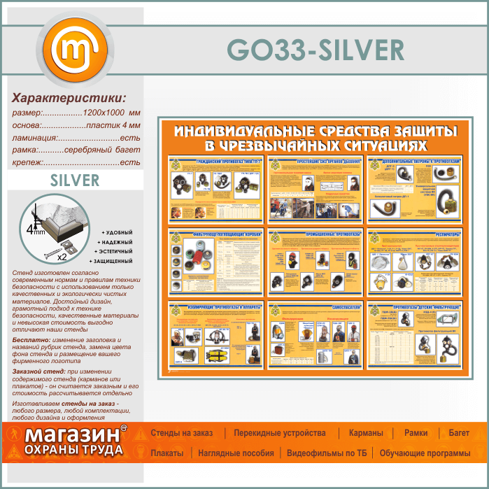 Стенд «Индивидуальные средства защиты в чрезвычайных ситуациях» (GO-33-SILVER) в Ачинске купить