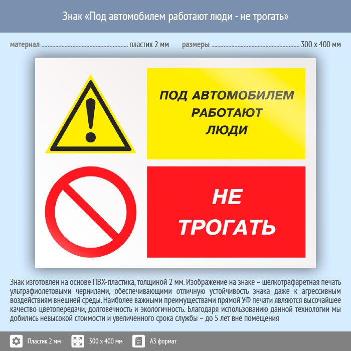 Знак «Под автомобилем работают люди - не трогать», КЗ-66 (пластик, 400х300 мм) в Ачинске купить