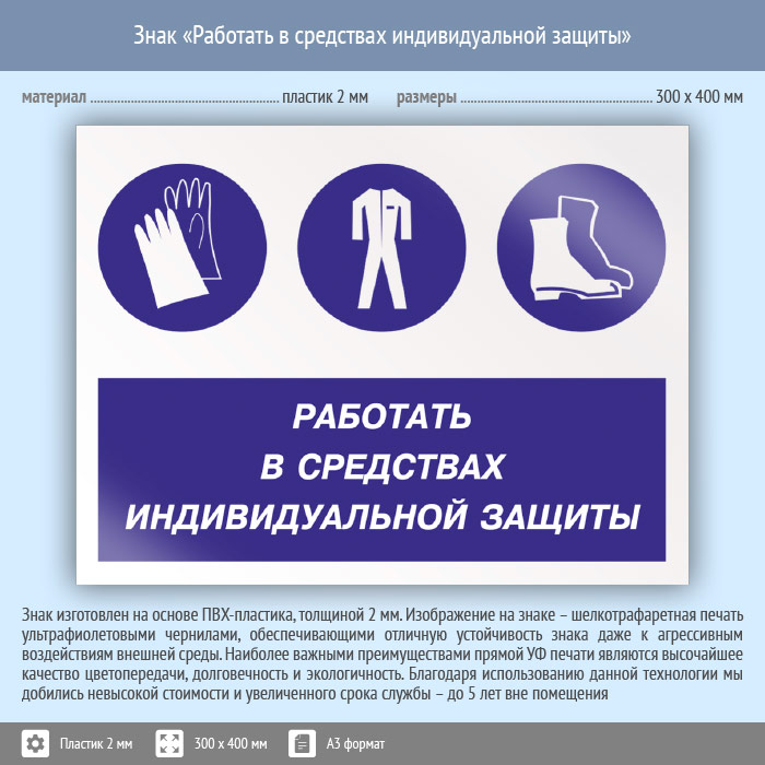 Знак «Работать в средствах индивидуальной защиты», КЗ-81 (пластик, 400х300 мм) в Ачинске купить