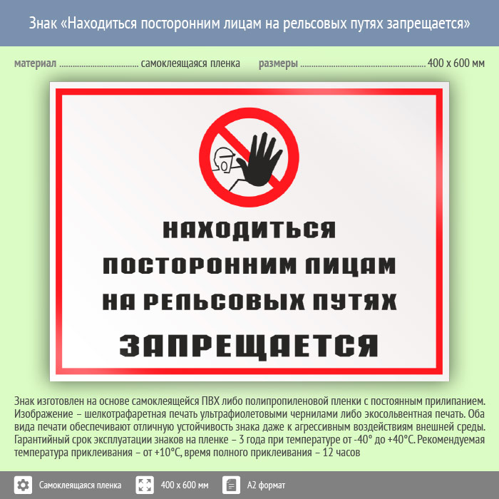 Знак «Находиться посторонним лицам на рельсовых путях запрещается», КЗ-25 (пленка, 600х400 мм) в Ачинске купить