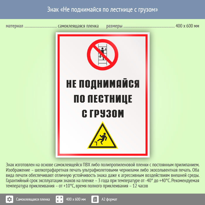 Знак «Не поднимайся по лестнице с грузом», КЗ-28 (пленка, 400х600 мм) в Ачинске купить