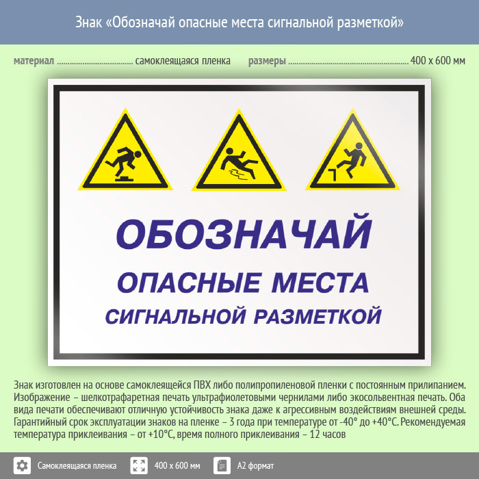 Знак «Обозначай опасные места сигнальной разметкой», КЗ-30 (пленка, 600х400 мм) в Ачинске купить