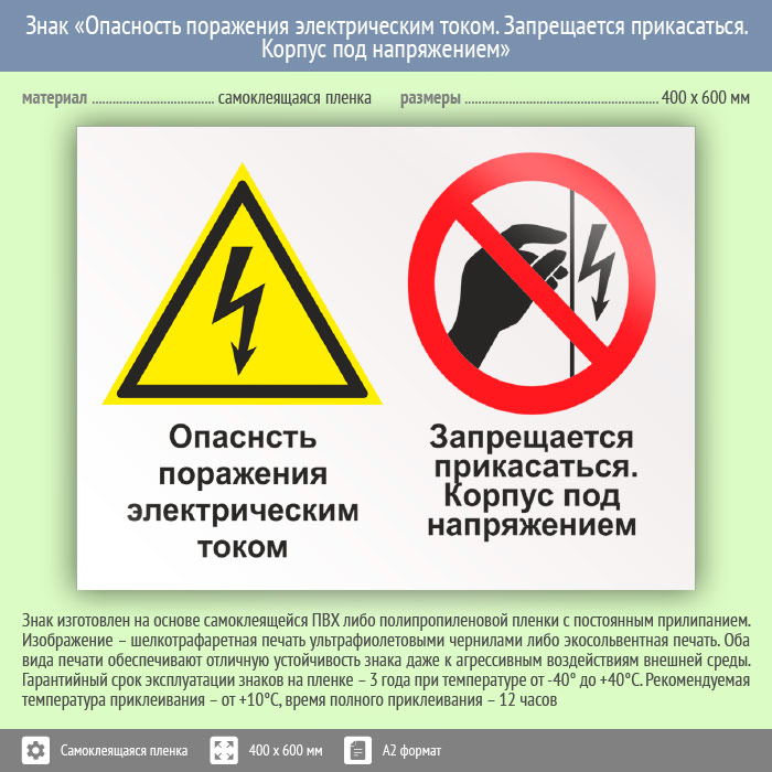 Знак «Опасность поражения электрическим током. Запрещается прикасаться. Корпус под напряжением», КЗ-47 (пленка, 600х400 мм) в Ачинске купить