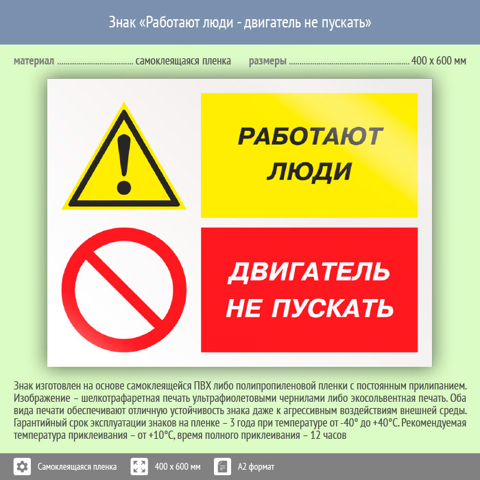 Знак «Работают люди - двигатель не пускать», КЗ-82 (пленка, 600х400 мм) в Ачинске купить