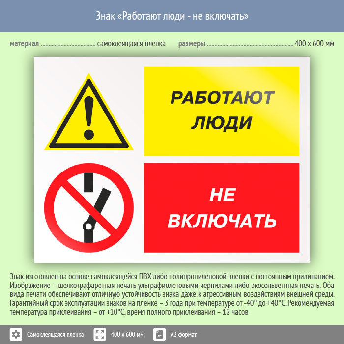 Знак «Работают люди - не включать», КЗ-83 (пленка, 600х400 мм) в Ачинске купить