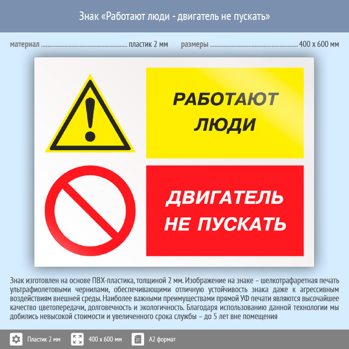 Знак «Работают люди - двигатель не пускать», КЗ-82 (пластик, 600х400 мм) в Ачинске купить