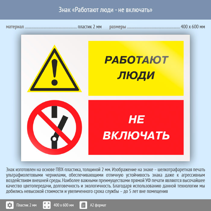 Знак «Работают люди - не включать», КЗ-83 (пластик, 600х400 мм) в Ачинске купить