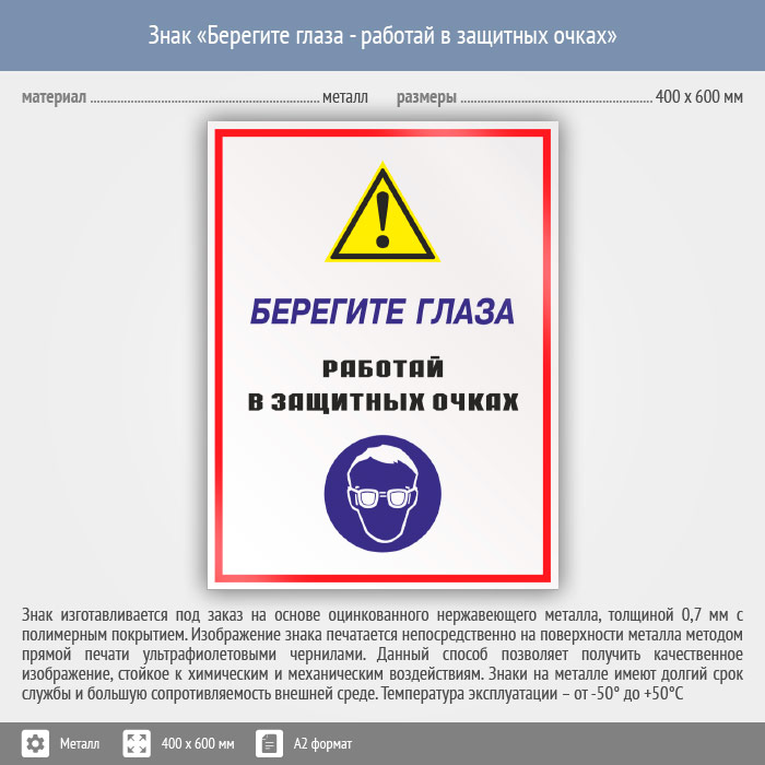 Знак «Берегите глаза - работай в защитных очках», КЗ-04 (металл, 400х600 мм) в Ачинске купить