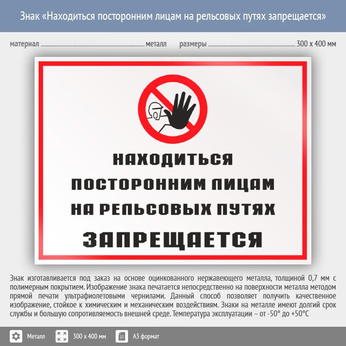 Знак «Находиться посторонним лицам на рельсовых путях запрещается», КЗ-25 (металл, 400х300 мм) в Ачинске купить