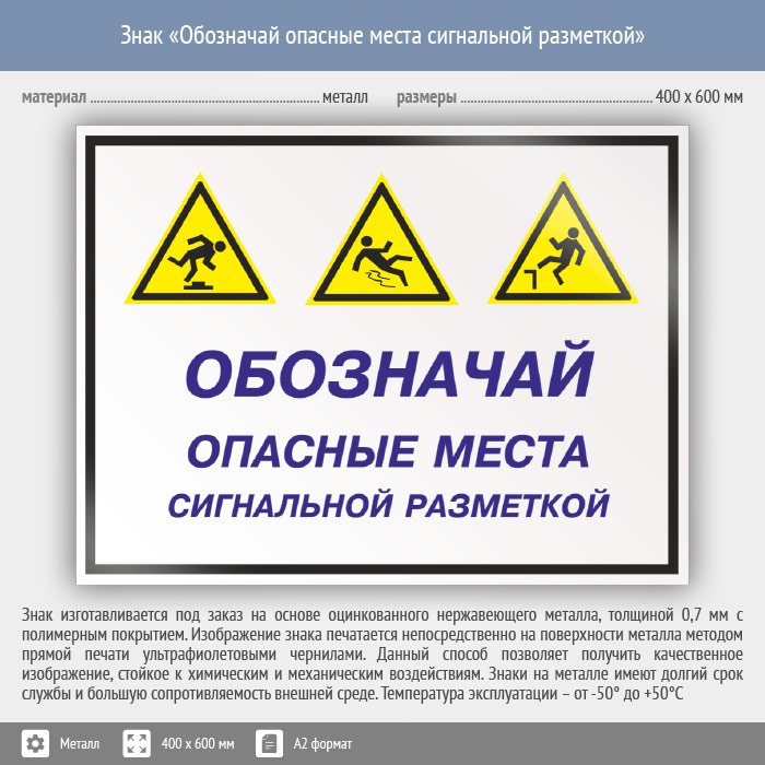 Знак «Обозначай опасные места сигнальной разметкой», КЗ-30 (металл, 600х400 мм) в Ачинске купить