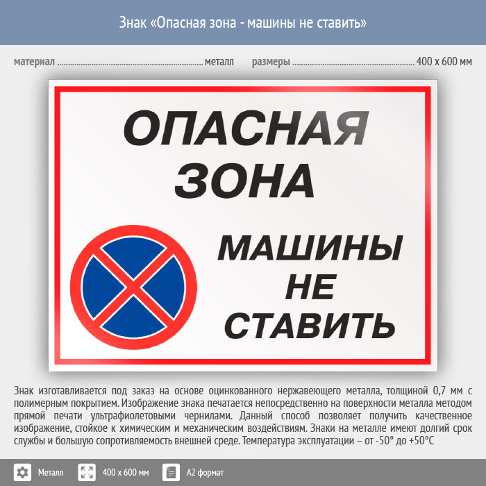 Знак «Опасная зона - машины не ставить», КЗ-32 (металл, 600х400 мм) в Ачинске купить