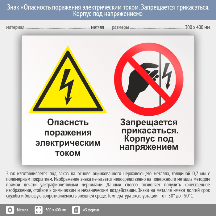 Знак «Опасность поражения электрическим током. Запрещается прикасаться. Корпус под напряжением», КЗ-47 (металл, 400х300 мм) в Ачинске купить