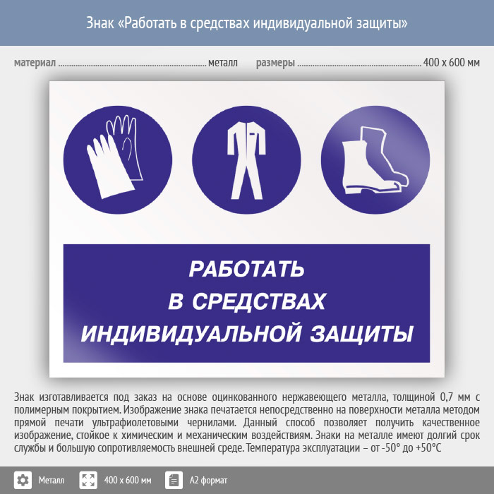 Знак «Работать в средствах индивидуальной защиты», КЗ-81 (металл, 600х400 мм) в Ачинске купить