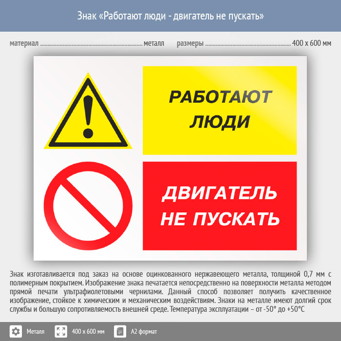 Знак «Работают люди - двигатель не пускать», КЗ-82 (металл, 600х400 мм) в Ачинске купить