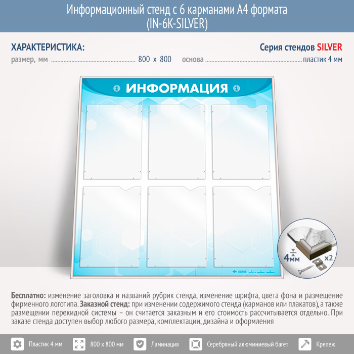 Информационный стенд с 6 карманами А4 формата (IN-6K-SILVER) в Ачинске купить