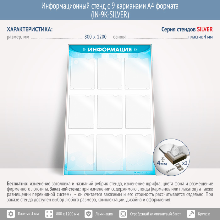 Информационный стенд с 9 карманами А4 формата (IN-9K-SILVER) в Ачинске купить