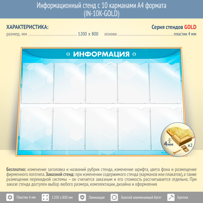 Информационный стенд с 10 карманами А4 формата (IN-10K-GOLD) в Ачинске купить