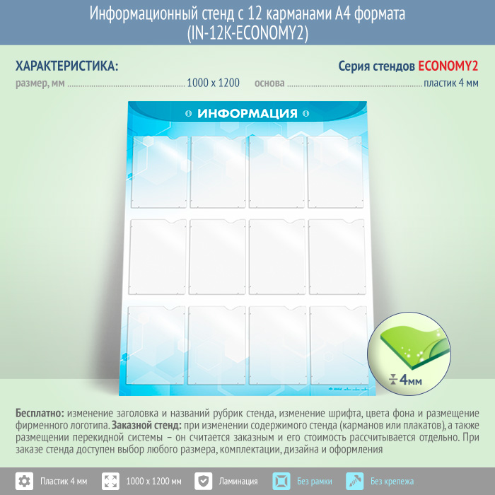 Информационный стенд с 12 карманами А4 формата (IN-12K-ECONOMY2) в Ачинске купить
