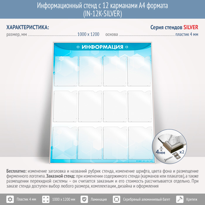 Информационный стенд с 12 карманами А4 формата (IN-12K-SILVER) в Ачинске купить