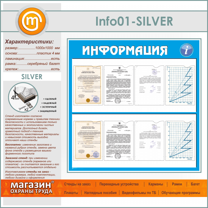 Стенд «Информация» с 8 карманами А4 формата (IN-01-SILVER) в Ачинске купить