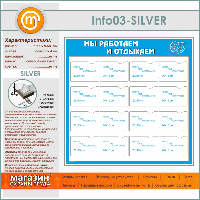 Стенд «Мы работаем и отдыхаем» с 16 карманами А5 формата (IN-03-SILVER) в Ачинске купить