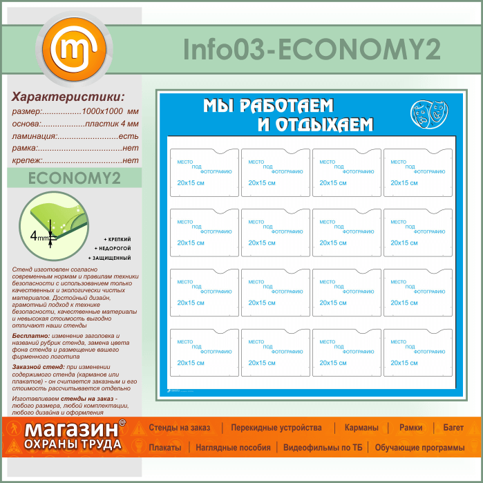 Стенд «Мы работаем и отдыхаем» с 16 карманами А5 формата (IN-03-ECONOMY2) в Ачинске купить
